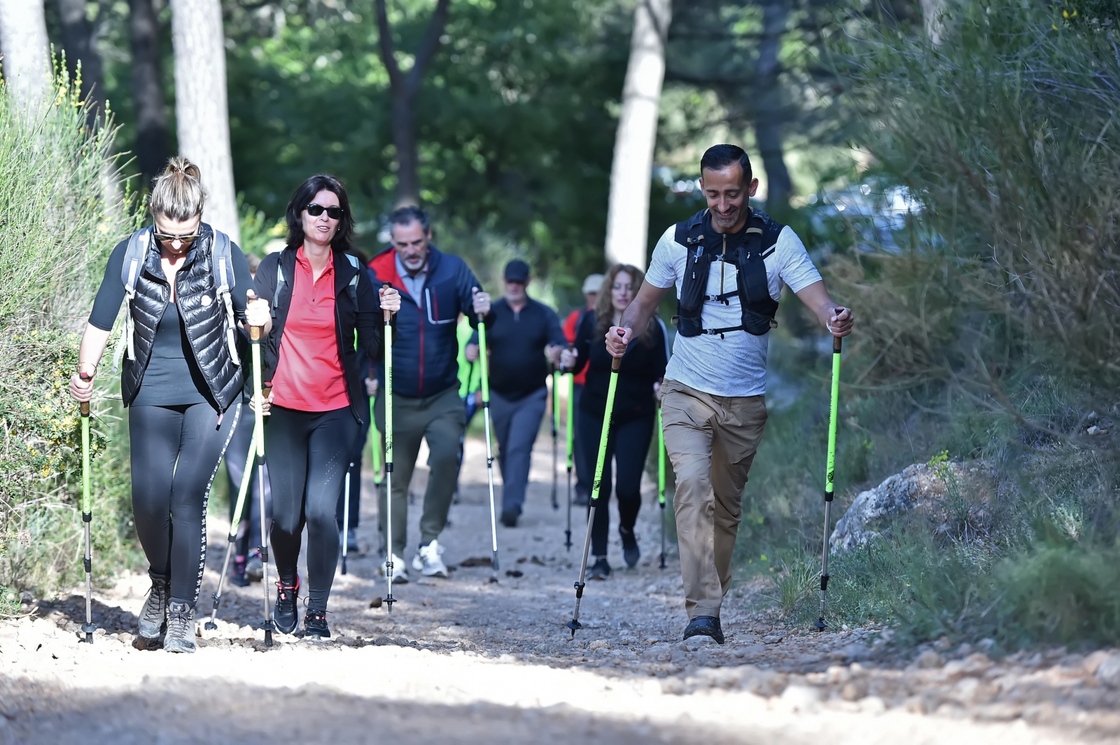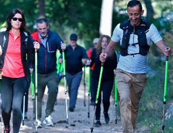 Les sorties sont ponctuées de petits exercices de cardio et renfo en se servant des bâtons sur des éléments naturels comme les rochers, les arbres... ou bien sur des éléments urbains comme des bancs, des escaliers, des murs... dans le cadre de sorties en ville ou dans des parcs.